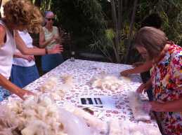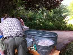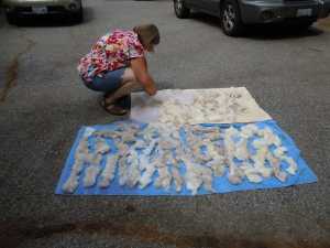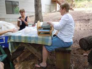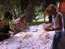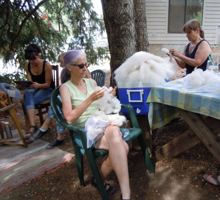 We had fun working with this Cormo fleece, even though it was a hot and smokey day.