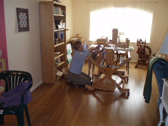 Kneeling to sley reed Beautiful roses Sitting or standing to sley reed